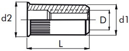 | Rozměr (D x L) | Vnější průměr (d1) | Průměr hlavy (d2) | Síla materiálu |
