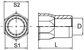 | Rozměr matice (D x L) | Rozměr šestihranu (S1) | Rozměr hlavy (S2) | Síla materiálu |