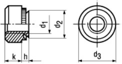 | Závit (d1) | Průměr osazení (d2) | Vnější průměr matice (d3) | Výška osazení (h) | Výška matice(k) | Min. síla materiálu |