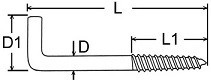 | Rozměr (D x L) | Délka závitu (L1) | Výška skoby (D1) |