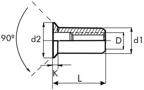 | Rozměr (D x L) | Vnější průměr (d1) | Průměr hlavy (d2) | Výška hlavy (K) | Síla materiálu |