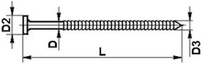 | Rozměr hřebíku (D x L) | Průměr hlavy (D2) | Průměr závitu (D3) | Množství |