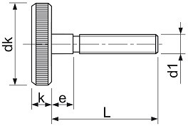 | Průměr (d1) | Průměr hlavy (dk) | Výška hlavy (k) | Délka těla (e) |