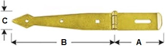 V rozměru uvádíme délku závěsu (A) x šířku kotevní části (B) x její výšku (C) x sílu materiálu.