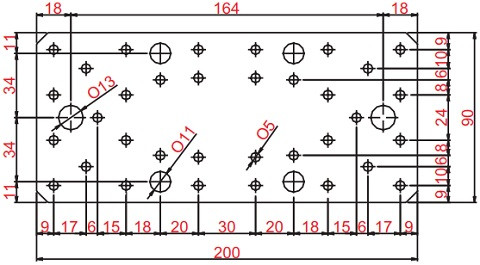 Statická spojka s otvory, vyrobená z ocelového pozinkovaného plechu.