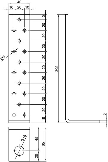Statický kotevní prvek s otvory, vyrobený z ocelového pozinkovaného plechu o síle 5 mm.