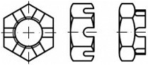 | Průměr (d) | Rozměr klíče (s) | Výška matice (w) | Celková výška (m) | Rozteč korunky (n) |