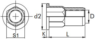 | Rozměr (D x L) | Rozměr šestihranu (S1) | Průměr hlavy (d2) | Výška hlavy (K) | Síla materiálu |