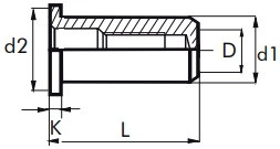 | Rozměr matice (D x L) | Vnější průměr (d1) | Průměr hlavy (d2) | Výška hlavy (K) | Síla materiálu |