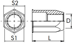 | Rozměr (D x L) | Rozměr šestihranu (S1) | Rozměr hlavy (S2) | Síla materiálu |