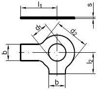| Rozměr | Vnitřní průměr (d1) | Vnější průměr (d2) | Šířka jazýčků (b) | Delší jazýček (l1) | Kratší jazýček (l2) | Síla (s) |