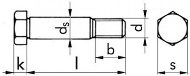 | Průměr (d) | Rozměr klíče (s) | Výška hlavy (k) | Síla těla (ds) | Závit (b pro l ≤ 50) | Závit (b pro 50 < l ≤ 150) | Závit (b pro l > 150) |