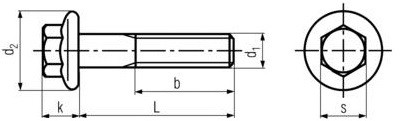 | Průměr (d1) | Rozměr klíče (s) | Výška hlavy (k) | Průměr límce (d2) | Závit (b pro L ≤ 125) | Závit (b pro 125 < L ≤ 200) |