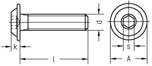 | Průměr (d) | Rozměr drážky (s) | Průměr límce (A) | Výška hlavy (k) |