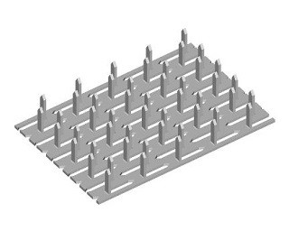 Statická styčníková deska s prolisovanými trny, vyrobená z ocelového pozinkovaného plechu o síle 1,5 mm.