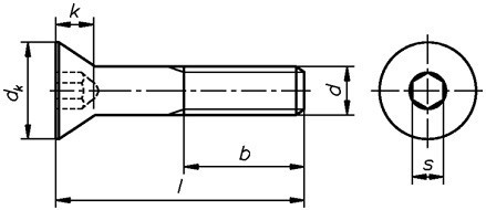 | Průměr (d) | Rozměr drážky (s) | Průměr hlavy (dk) | Výška hlavy (k) | Závit (b pro l ≤ 125) | Závit (b pro 125 < l ≤ 200) | Závit (b pro l > 200) |